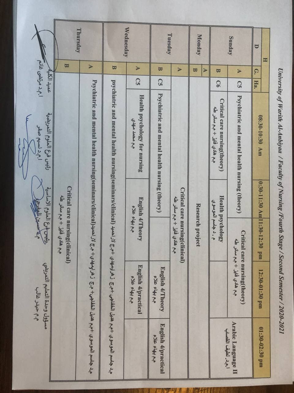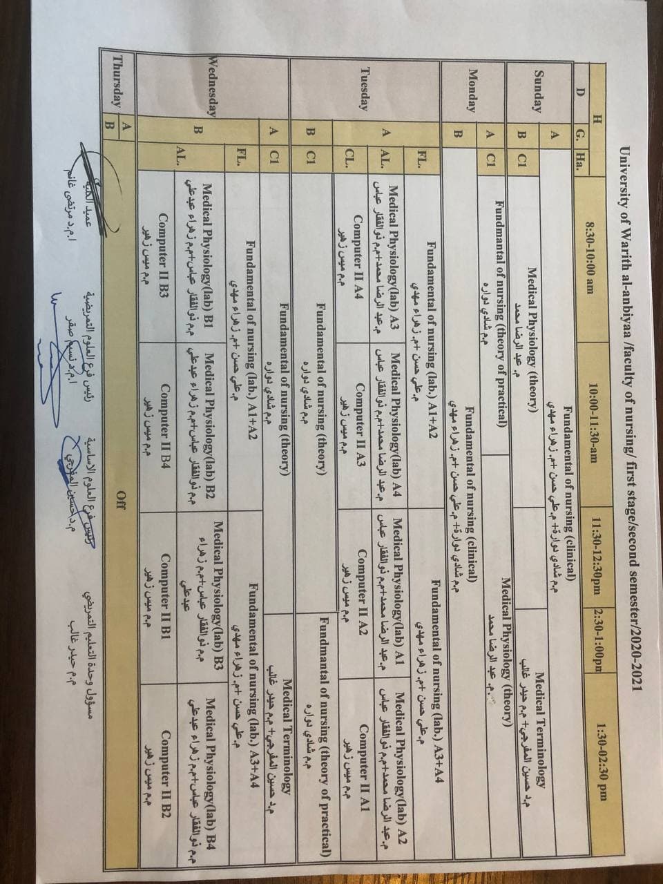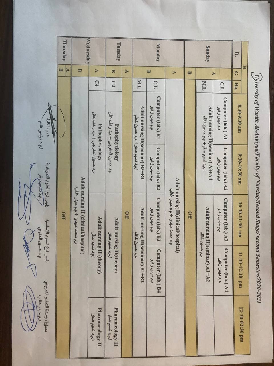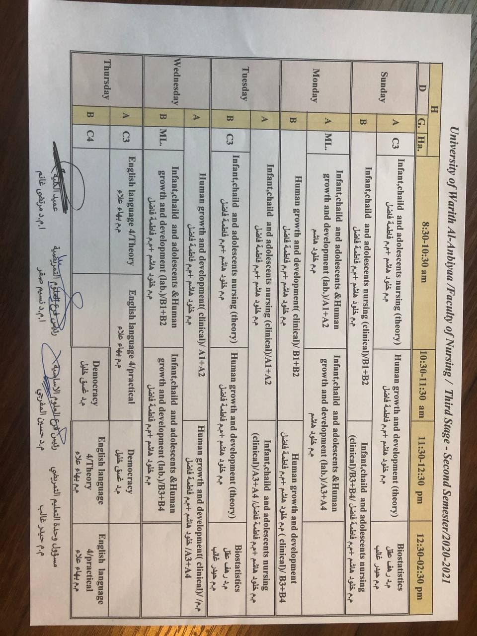 جدول المحاضرات