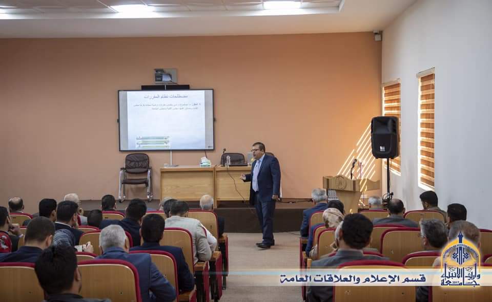 اقامت جامعة وارث الانبياء (عليه السلام) وبالتعاون مع جامعة كربلاء ورشة عمل حول نظام المقررات الدراسي الذي اقرته وزارة التعليم العالي والبحث العلمي في جميع الكليات والجامعات الحكومية والاهلية للوقوف على اهم مميزات هذا النظام ومعوقاته وحل جميع الاشكاليات التي تواجة التدريسي والطالب للوصول الى التطبيق الامثل لهذا النظام في الجامعة ، وتحدث م.د. محمد باقر حميد من كلية التمريض/جامعة بغداد قائلاً :