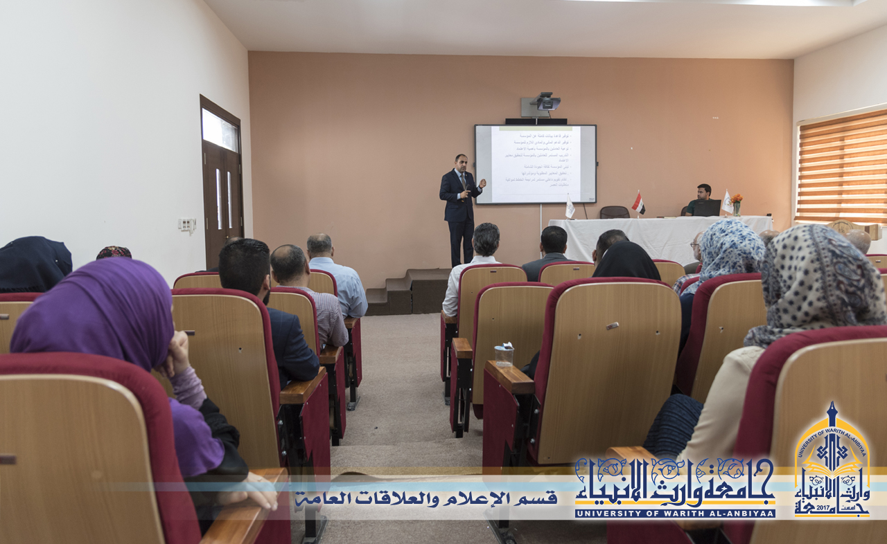 اقام قسم التعليم المستمر في جامعة وارث الانبياء ضمن فعاليات اسبوع الجودة محاضرة بعنوان اخلاقيات العمل الجامعي ودورها في ضمان جودة التعليم وذكر التدريسي في كلية القانون الدكتور عقيل كريم أن الهدف من المحاضرة هو التأكيد على الالتزام بالأخلاقيات والسلوكيات الجامعية لضمان المخرجات السليمة، مضيفا: أصبح “التميز“ هو حجر الزاوية في كل الجامعات، و السعي نحو الحصول على الجودة اكتسب طابعاً ملحاً في الآونة الأخيرة فلابد من زيادة قدرات ومهارات الكوادر التدريسية وغرس قيم ومبادئ الاداء الجامعي الرصين الأمر الذي يسهم حقا في إثراء العملية التعليمية .