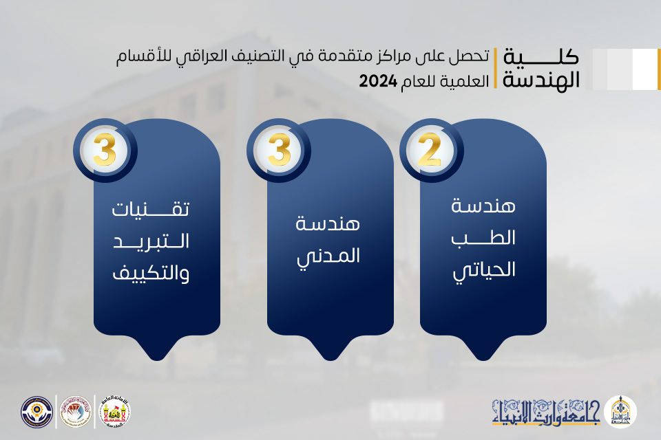 حقق قسم الهندسة في جامعة وارث الأنبياء (عليه السلام) إنجازاً متميزاً في التصنيف العراقي للجامعات والكليات الأهلية، الذي أعلنته وزارة التعليم العالي والبحث العلمي.