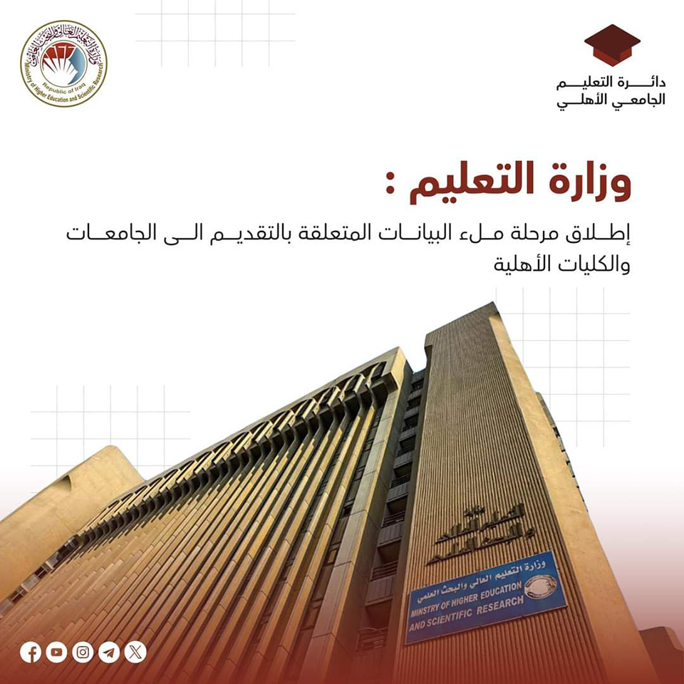 إطلاق مرحلة ملء البيانات للتقديم على الجامعات الأهلية العراقية
