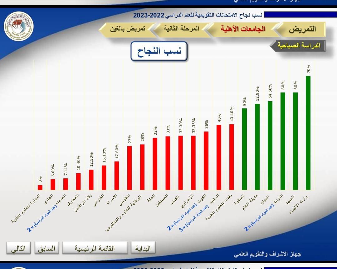 حسب ماجاء بكتاب وزارة التعليم العالي والبحث العلمي/ جهاز الإشراف والتقويم العلمي.