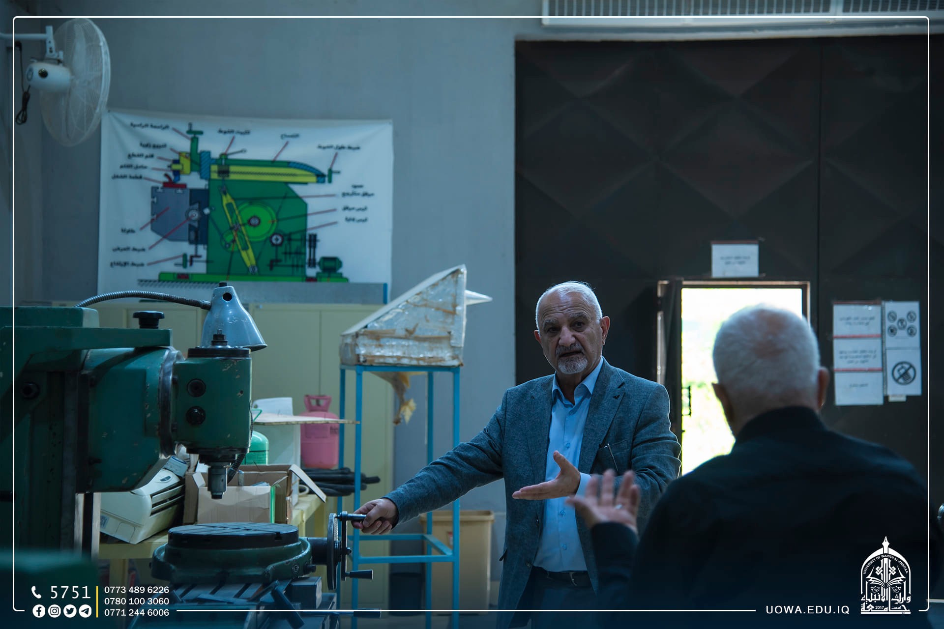 تفقد السيد المساعد الإداري الأستاذ الدكتور نوفل الأعرجي برفقة الدكتور علي باسم رئيس قسم هندسة تقنيات التبريد والتكيف، الورش والمختبرات الخاصة بكلية الهندسة