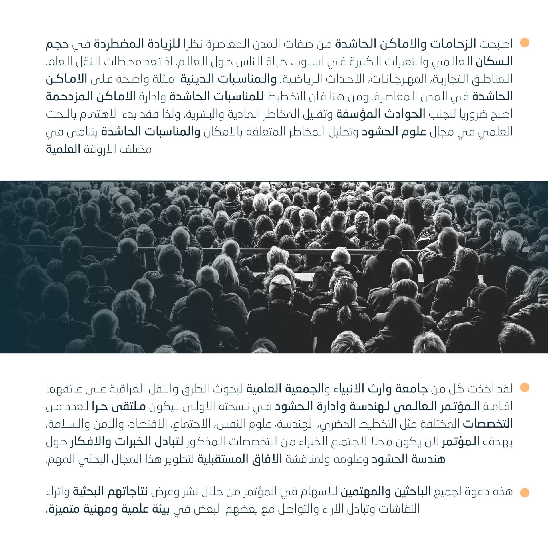 "المؤتمر العالمي الاول لهندسة وادارة الحشود كربلاء المقدسة، للفترة 22 -23 آذار 2023"