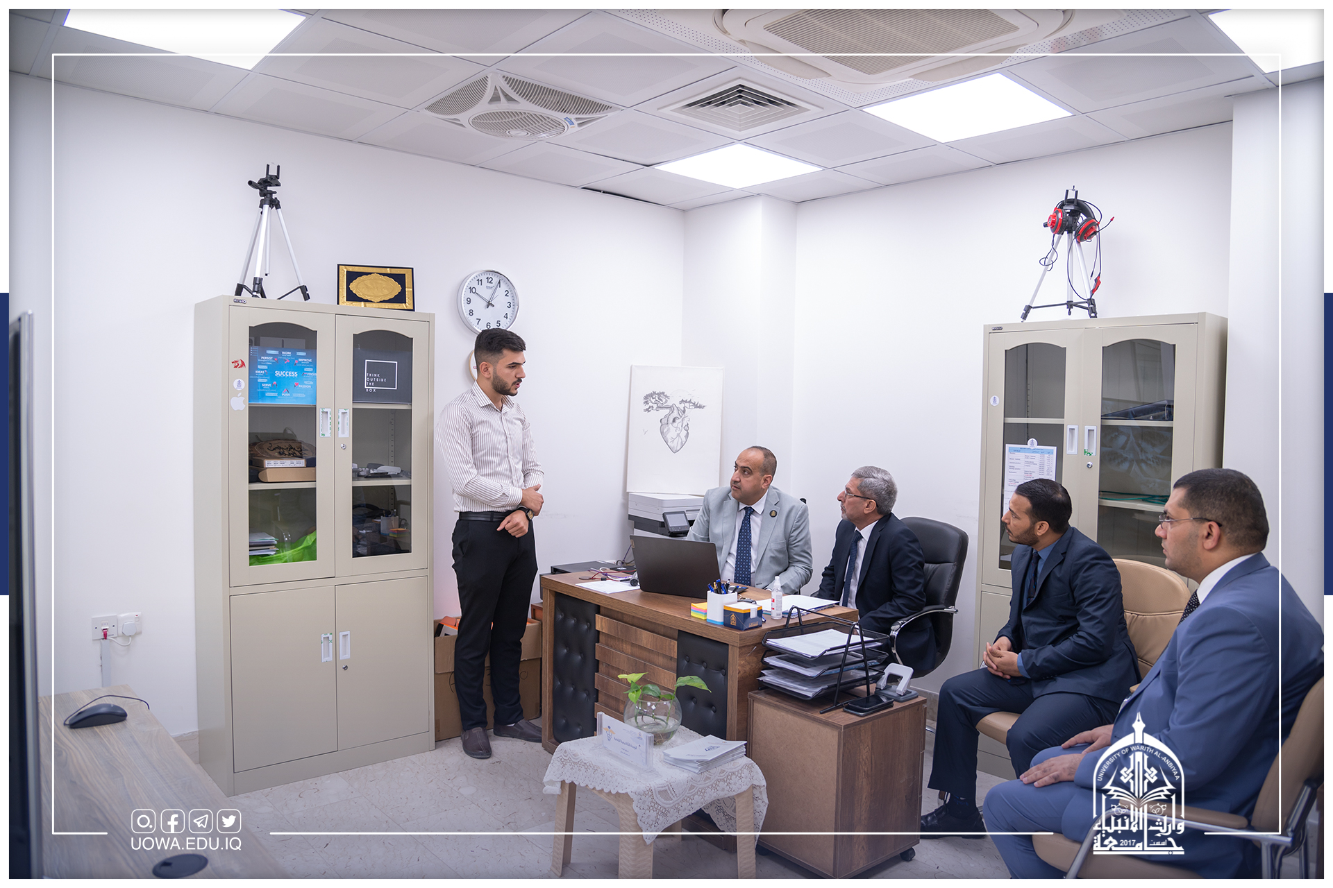 حيث عقد رئيس اللجنة العلمية أ.م.د انمار فالح ديكان مع اللجنة التحضرية لجائزة وارث الأنبياء، الاجتماع الدوري الثاني لمناقشة أهم السبُل اللازمة لإنجاح المسابقة، ولتسليط الضوء عليها لانها ستكون رافداً جديداً في إكتشاف المواهب الطلابية و دعمها و رعايتها وتنميتها، اذ ستتولى لجان فرعية من مديرية التربية تحديد الطلبة الموهوبين واعمالهم للمنافسة في المسابقة التي ستقام بتاريخ 15\10\2022.