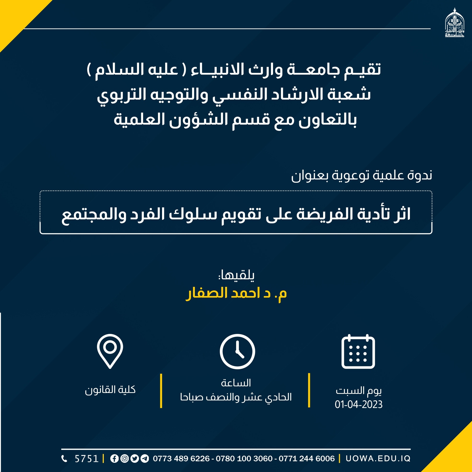 تقيم جامعة وارث الأنبياء (عليه السلام)، شعبة الإرشاد النفسي والتوجيه التربوي