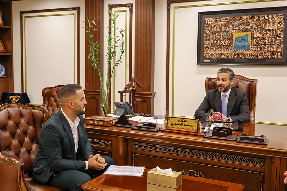 The Minister of Higher Education and Scientific Research, Dr Naeem Al-Aboudi, honoured Aqeel Zaid Nabil — a student and inmate at Al-Karkh Central Prison — who completed his university studies through the Prisoner Education Programme, an initiative led by the Ministry of Higher Education in cooperation with the Ministry of Justice and implemented by the University of Information Technology and Communications. This initiative reflects a strategic approach to reintegrate inmates into society through education.