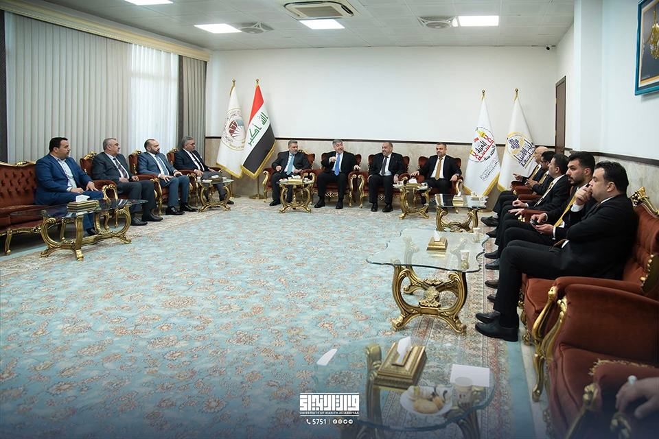 As part of its efforts to strengthen institutional cooperation with state institutions, the Presidency of the University of Warith Al-Anbiyaa received a high-level delegation from the Iraqi Ministry of Foreign Affairs, headed by the Deputy Minister for Political Planning, Dr. Hisham Al-Alawi. The delegation was welcomed by the University President, Professor Dr. Ibrahim Saeed Al-Hayyawi, accompanied by the Vice President for Scientific Affairs, Professor Dr. Waqed Al-Moussawi, and members of the University Council.
