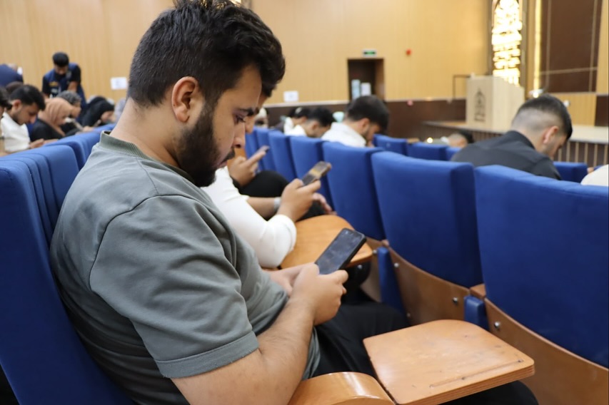 The images show the students' serious engagement during the electronic exams and the smooth flow of the examination process at the College of Medicine, Warith Al-Anbiya University (peace be upon him)