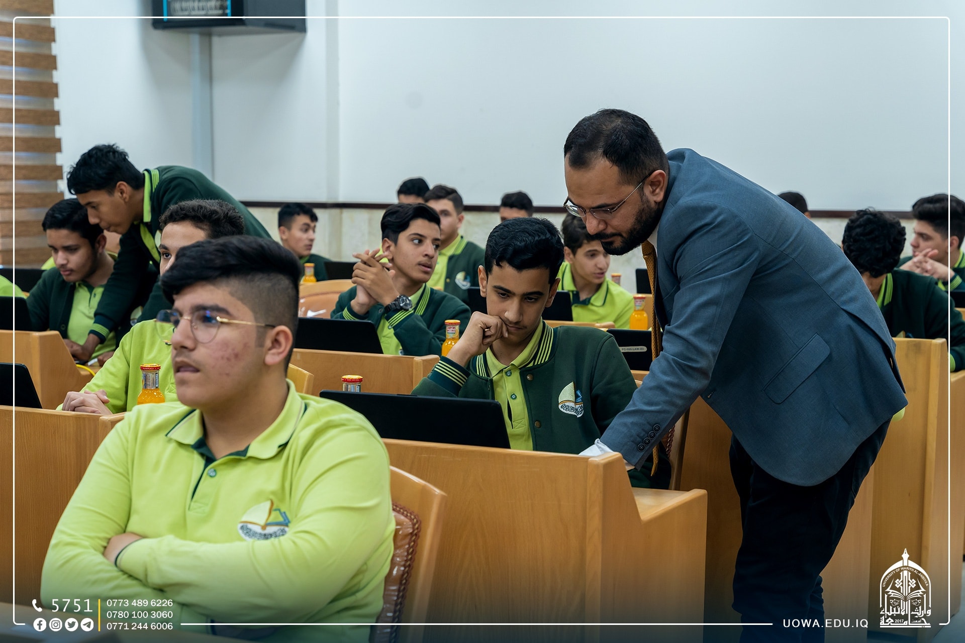 On the sidelines of the recreational scientific visit for students of Al-Warith Schools to Al-Warith AlAnbiyaa University, the Continuing Education Center held an intellectual competition for students on the university's electronic system. The questions varied between general, mathematical and scientific, and in conclusion, prizes were presented to the ten winning students.