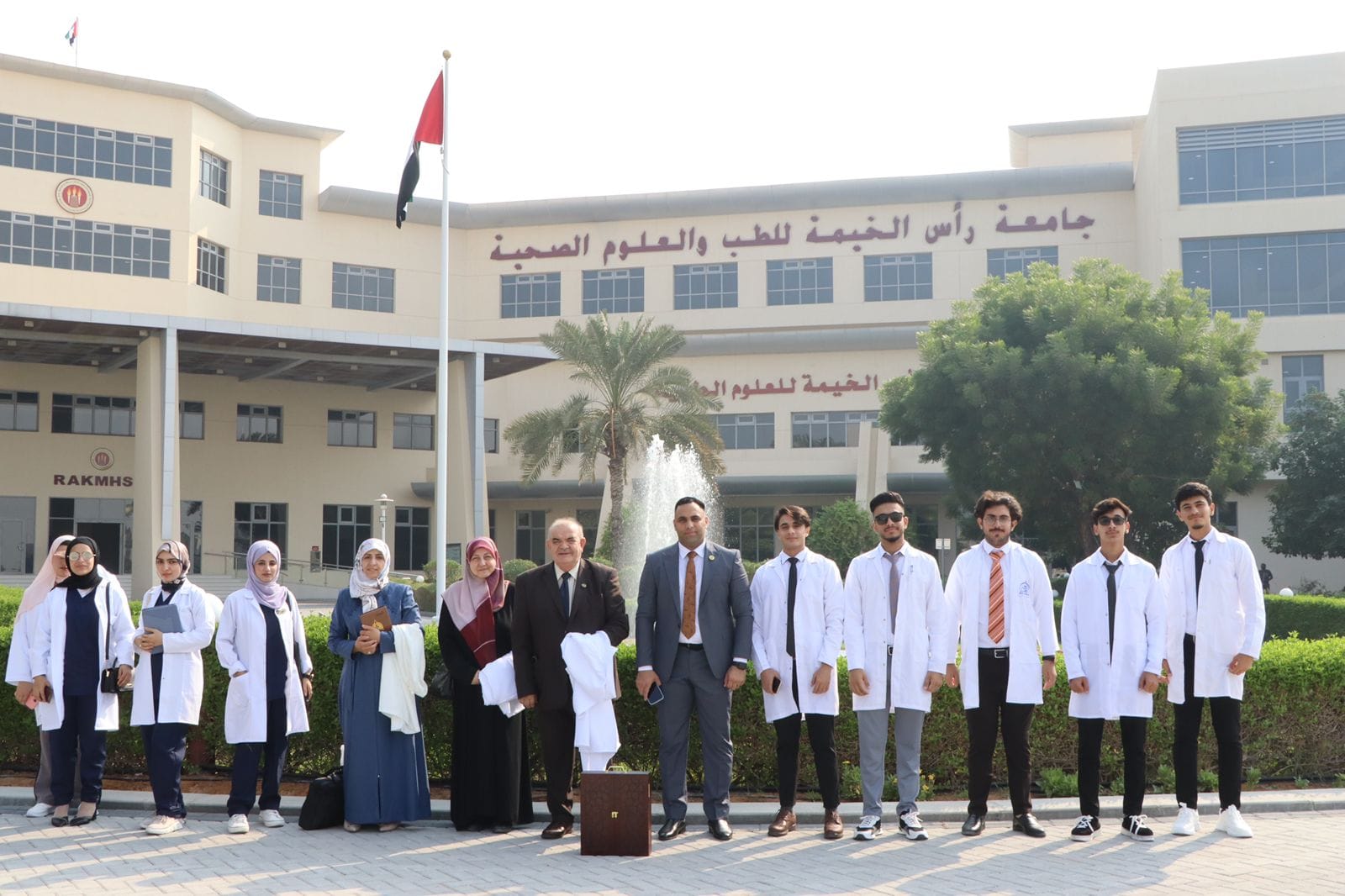 Under the supervision of Professor Dr. Munim Al-Shawk, Dr. Nasreen Jawad Kazim, and Dr. Sari Ghassan, medical students have commenced practical training courses at Saqr Hospital and Ras Al Khaimah Medical and Health Sciences University.