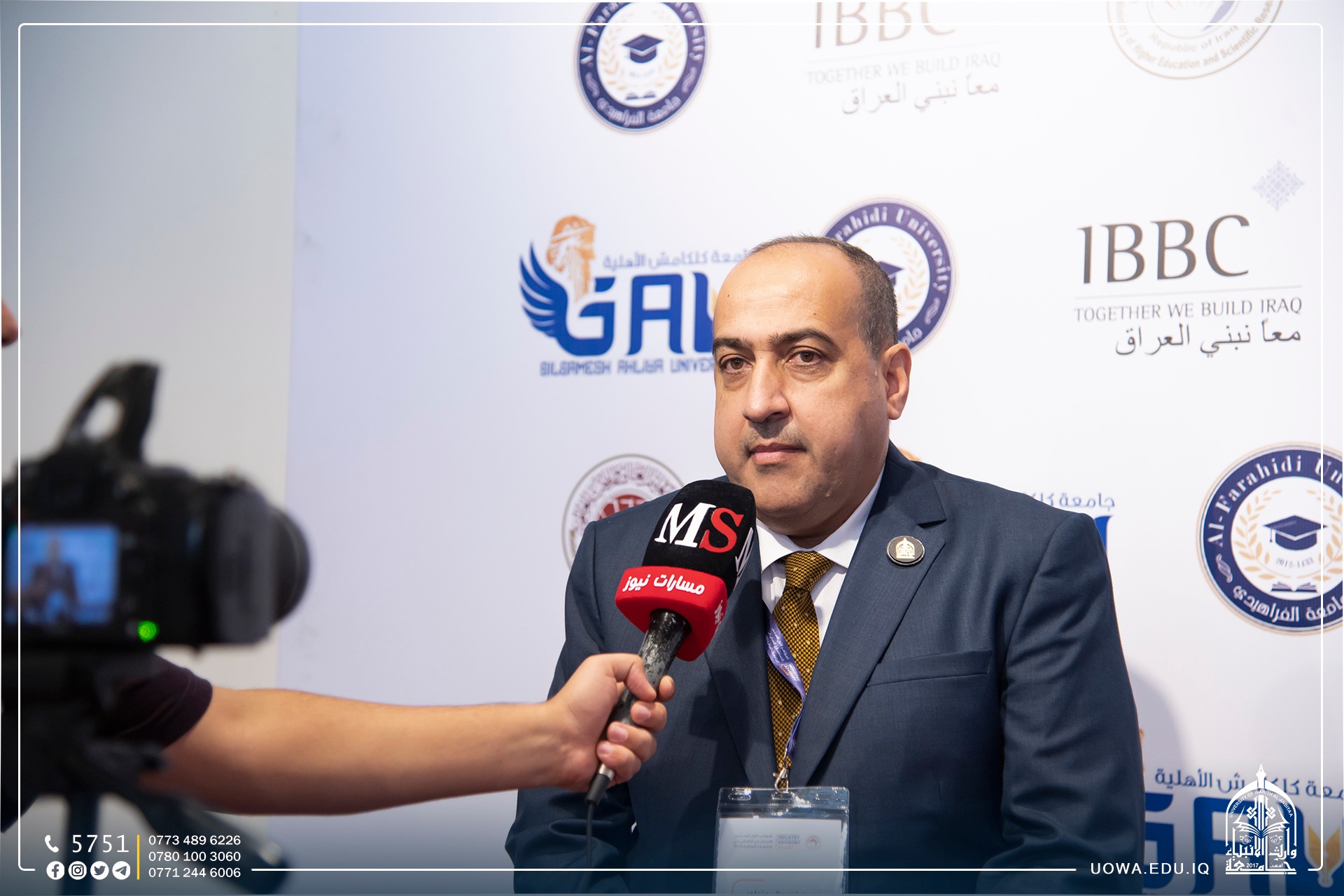Under the patronage of the Minister of Higher Education and Scientific Research, Dr. Naeem Al-Aboudi, a delegation from the University of Warith Al-Anbiyaa (Peace Be Upon Him), led by Professor Dr. Ibrahim Al-Hayawi, participated in the launch of the "First Conference of the Industrial Advisory Council in Iraqi Universities." The conference is organized by the Ministry of Higher Education and Scientific Research.