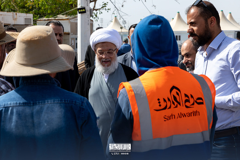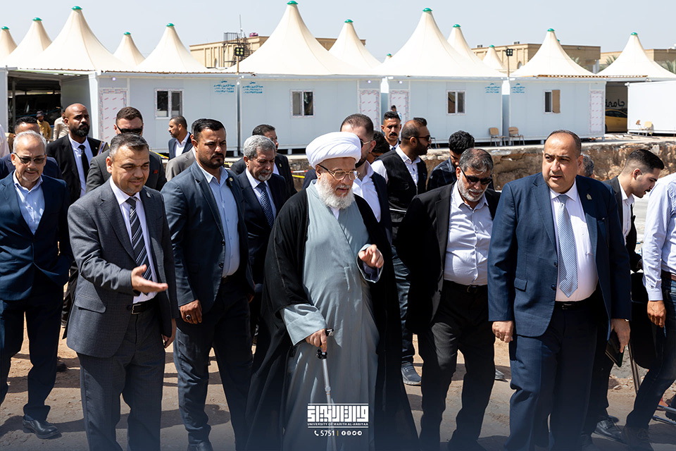 His Eminence Sheikh Abdul Mahdi Al-Karbalai, the representative of the supreme religious authority and the legal guardian of the Holy Shrine of Imam Hussein (PBUH), visited the University of Warith Al-Anbiyaa (PBUH). He was received with pride and appreciation by the president of the university, Professor Dr. Ibrahim Al-Hayawi, the scientific assistant, Professor Dr. Waqed Al-Moussawi, in addition to the deans of colleges and heads of departments.