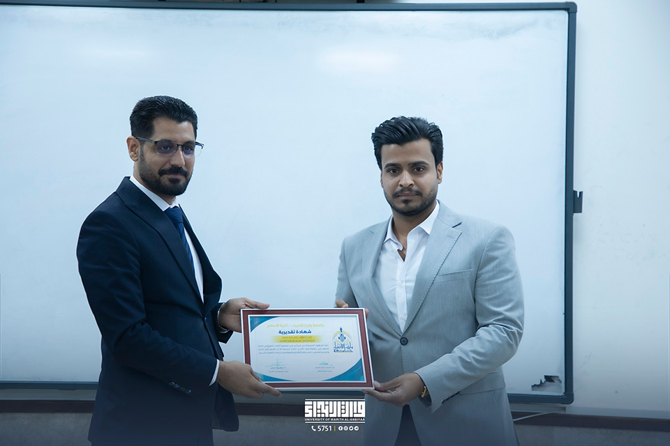 The Deanship of the College of Media at the University of Warith Al-Anbiyaa (PBUH) honored several students for their participation in the competition that was initiated by the university's president, professor Dr. Ibrahim Al-Hayawi. The competition was for "the most beautiful design for the college logo, a brochure design for the College of Media, and a professional promotional video."