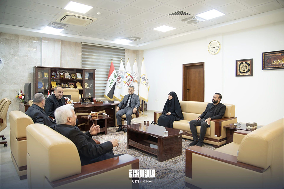 The Karbala Centre for Studies and Research at the Holy Shrine of Imam Hussein sent a delegation, which was met in an official meeting by Professor Dr. Ibrahim Al-Hayawi, President of the University of Warith Al-Anbiyaa (PBUH), and Professor Dr. Waqid Al-Moussawi, Vice President for Scientific Affairs.