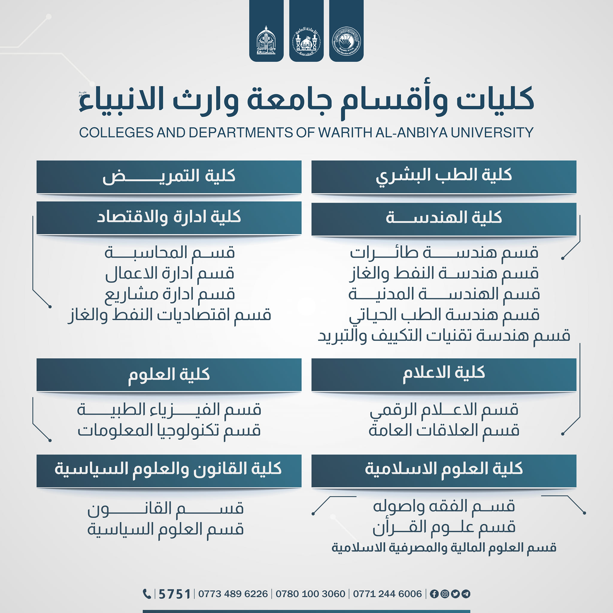 For inquiries and communication: Location: Karbala on Baghdad-Karbala Road, Al-Ala Building/Third Floor - University of Warith Al-Anbiyaa. Contact: