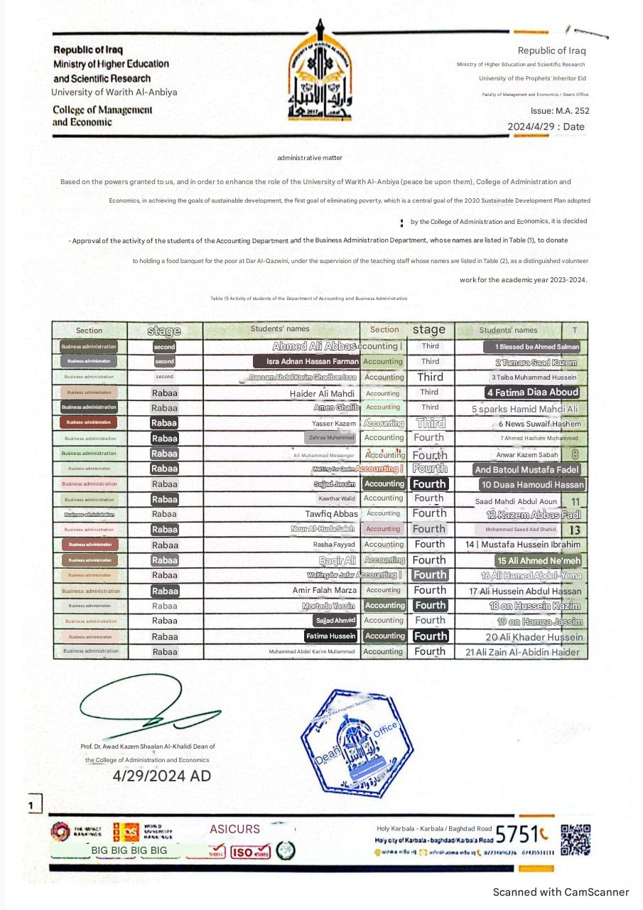 The College of Sciences at the University of Warith Al-Anbiyaa (peace be upon him), in collaboration with the Karbala Health Department / Blood Bank, organized an exceptional humanitarian campaign for blood donation.