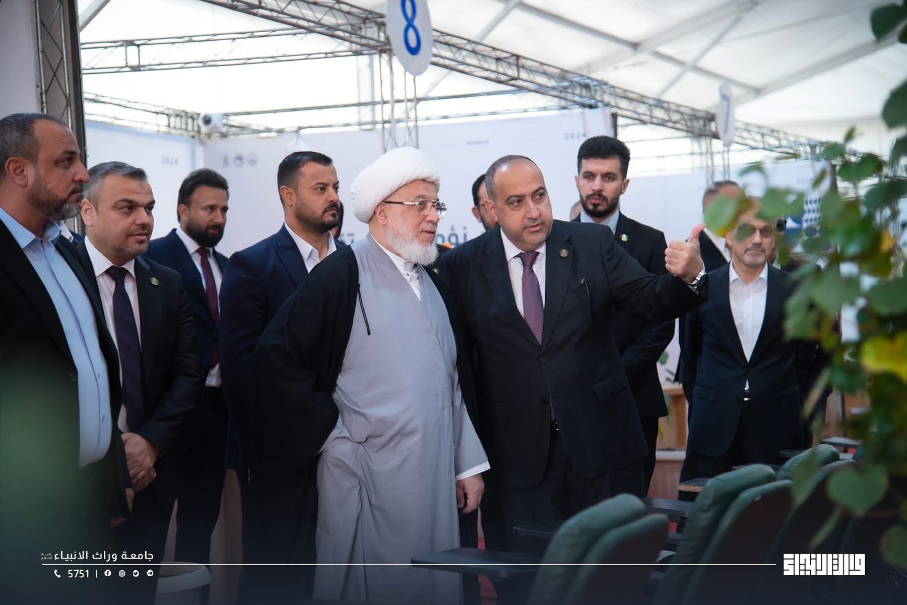 The representative of the Supreme Religious Authority, His Eminence Sheikh Abdul Mahdi Al-Karbalai ,visits the registration tent at Warith Al-Anbiyaa University