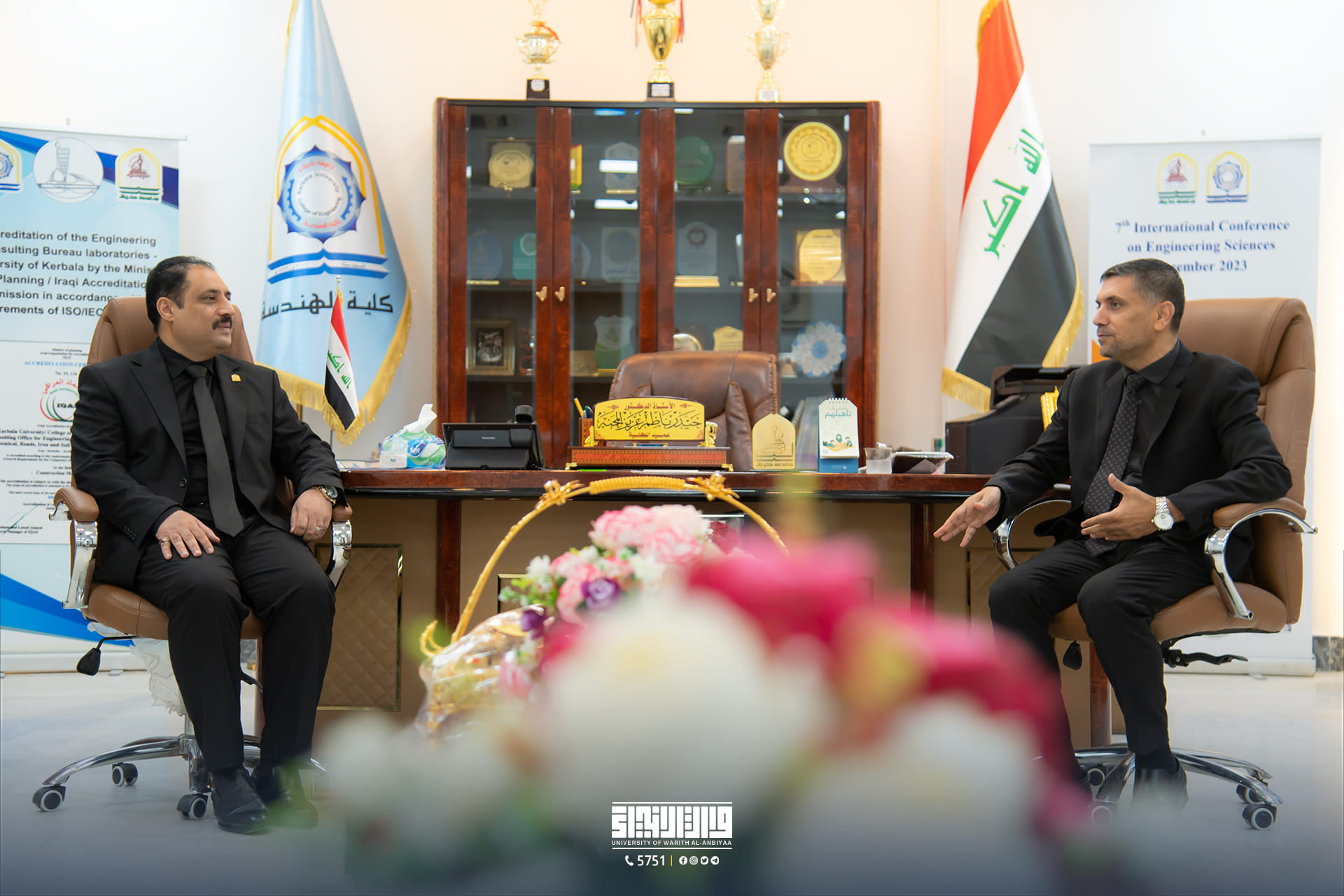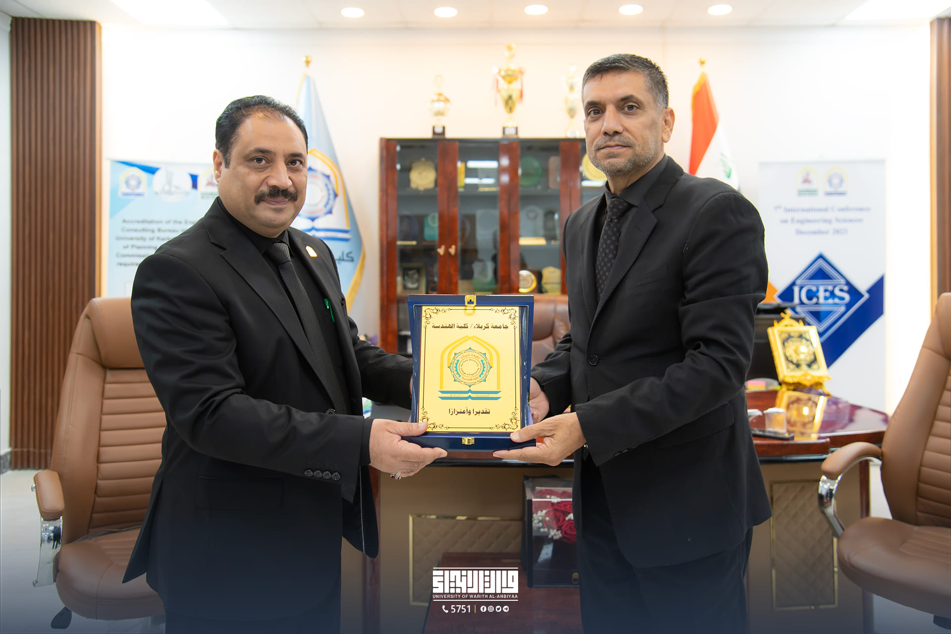 In a step that reflects the commitment of the two universities to strengthen academic cooperation, the Dean of the College of Engineering, Assistant Professor Dr. Hussein Hadi Al-Awadi, and his accompanying delegation, signed a scientific twinning agreement with Professor Dr. Haider Nazim Al-Mahanna, Dean of the College of Engineering at the University of Karbala.