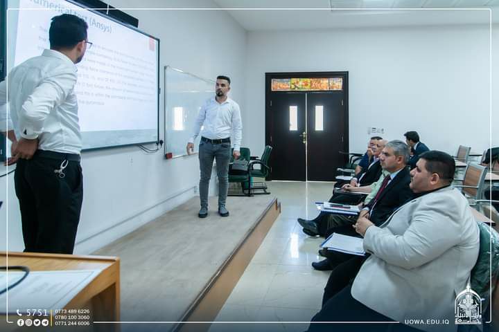 The Deanship of the College of Engineering/Department of Air Conditioning and Refrigeration Technology Engineering discusses the graduation research of fourth-year students, in the presence of a scientific committee formed by the Deanship of the College to supervise the discussion