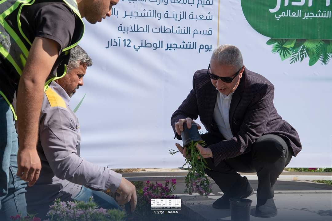 The Student Activities Department at Warith Al-Anbia University, in cooperation with the Diwan Affairs Department, Decoration and Tree Planting Division, organized a tree planting campaign as part of the celebration of the National Tree Planting Day on March 12, 2024. This campaign comes within the national project for pioneering projects in Iraqi universities and institutes.