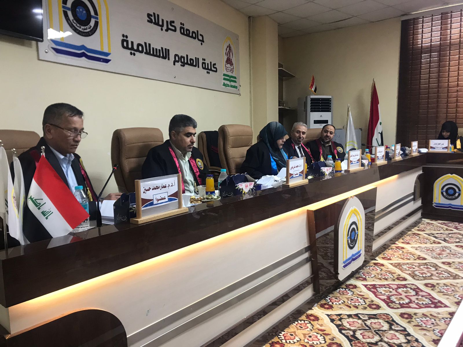 Dean of the College of Islamic Sciences participates in the discussion of a doctoral thesis at the University of Karbala