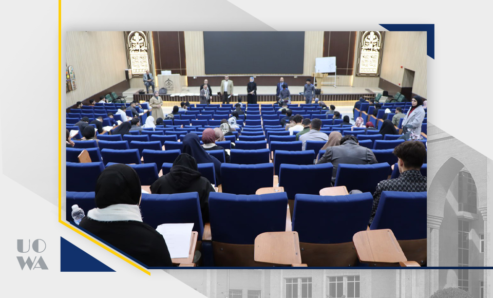 In the presence of the Dean of the College, Prof. Dr. Ali Abdul Saadoun, the Scientific Assistant, Assistant Professor Dr. Laith Al-Hussaini, and the Administrative Assistant, Lecturer Dr. Anwar Al-Dahan, the first stage exam for the subjects of Medical Terminology and Human Rights was conducted in eight classrooms, where the exams were conducted in an organized atmosphere according to the approved academic regulations and instructions. The Deanship of the College was keen to follow up on the progress of the exams in the field, and to ensure that the appropriate environment was provided for students to take their exams smoothly, while adhering to the organizational procedures that ensure transparency and justice. The importance of preparing the exam halls and providing the necessary supplies to ensure the comfort of students during the exam was also emphasized.