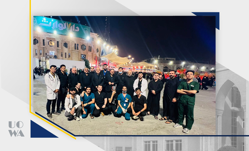 The President of Warith al-Anbiya University (peace be upon him), Professor Ibrahim Saeed al-Hayawi, accompanied by the Dean of the College of Medicine, Professor Ali al-Ghazi, conducted a field tour to inspect the medical detachments participating in providing health services to visitors of Imam Hussein (peace be upon him) during the Ashura ceremonies. The tour included an inspection of the workflow of the field detachments in which medical students participate, and an assessment of their readiness to deal with emergency situations and provide first aid. This reflects an aspect of the practical field training that the university is keen to provide for its students.