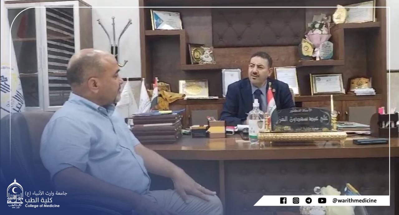 The head of the Iraqi-Korean Friendship Organization visited the College of Medicine. He was received by the Dean of the College of Medicine, Professor Dr. Ali Abd Saadoun, and the Scientific Associate, Lecturer Dr. Riyad Haniwah. The meeting dealt with the study of signing memorandums of understanding between a number of Korean universities with international rankings.