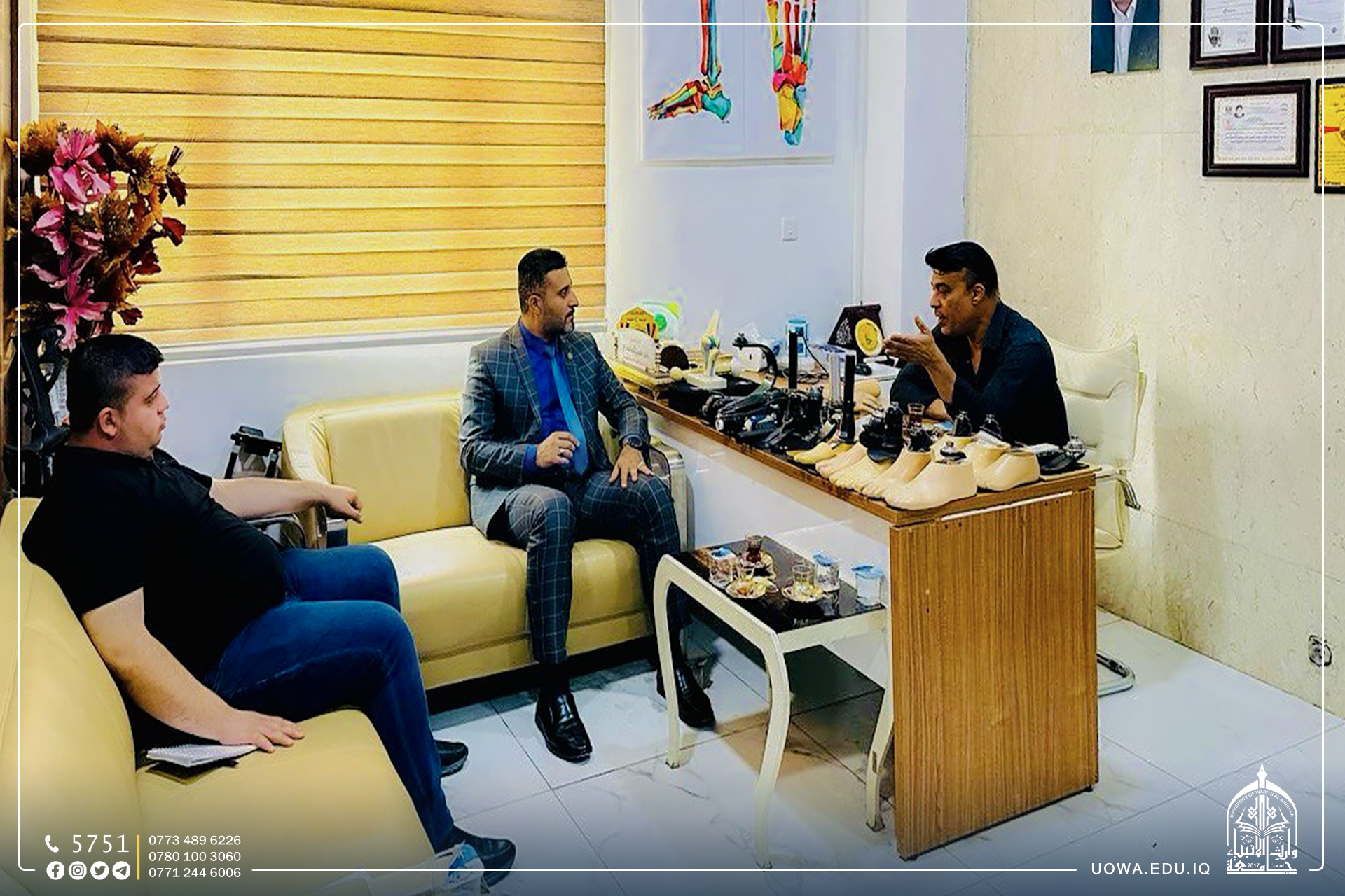 In preparation for qualifying and training students and graduates of the Biomedical Engineering Department and their employment at the "Warith Dairman Center for Prosthetics," which is affiliated with the Holy Al-Abbas Holy Shrine, a team from the Warith Center for Leadership, Innovation, and Development visited the "Warith Dairman Center for Prosthetics." They met with the center's assistant director, Engineer Haider Al-Quraini, and discussed ways of cooperation in the field of qualifying, training, and employing students and graduates of the Biomedical Engineering Department through workshops and training courses. Additionally, they discussed supporting and promoting innovation in the field of prosthetic manufacturing. It is worth mentioning that the Warith Center for Leadership, Innovation, and Development continues its visits and cooperation agreements with several institutions affiliated with the Holy Al-Abbas Holy Shrine and private companies as part of its program to qualify, train, and employ university students.