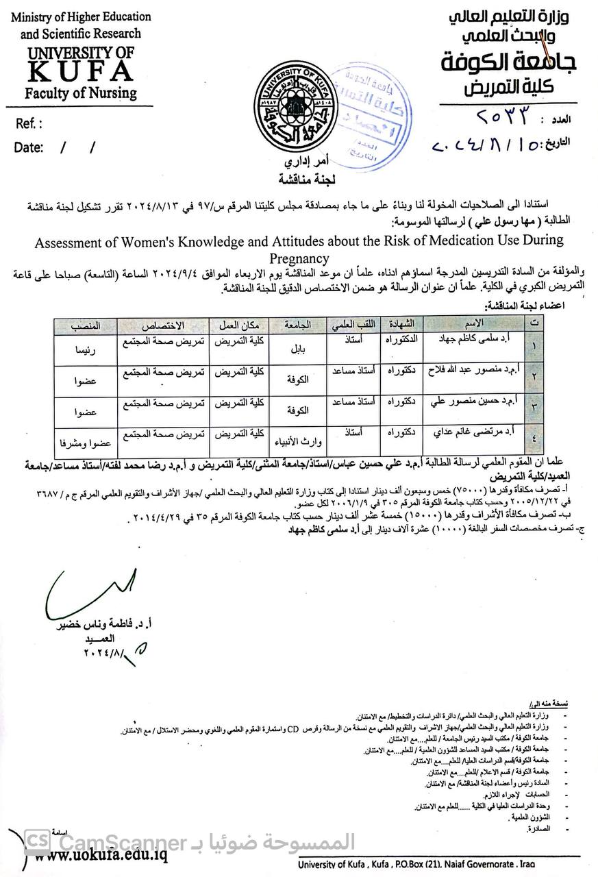 The Dean of the College of Science participated as a member of the scientific committee for the defense of a master’s thesis.