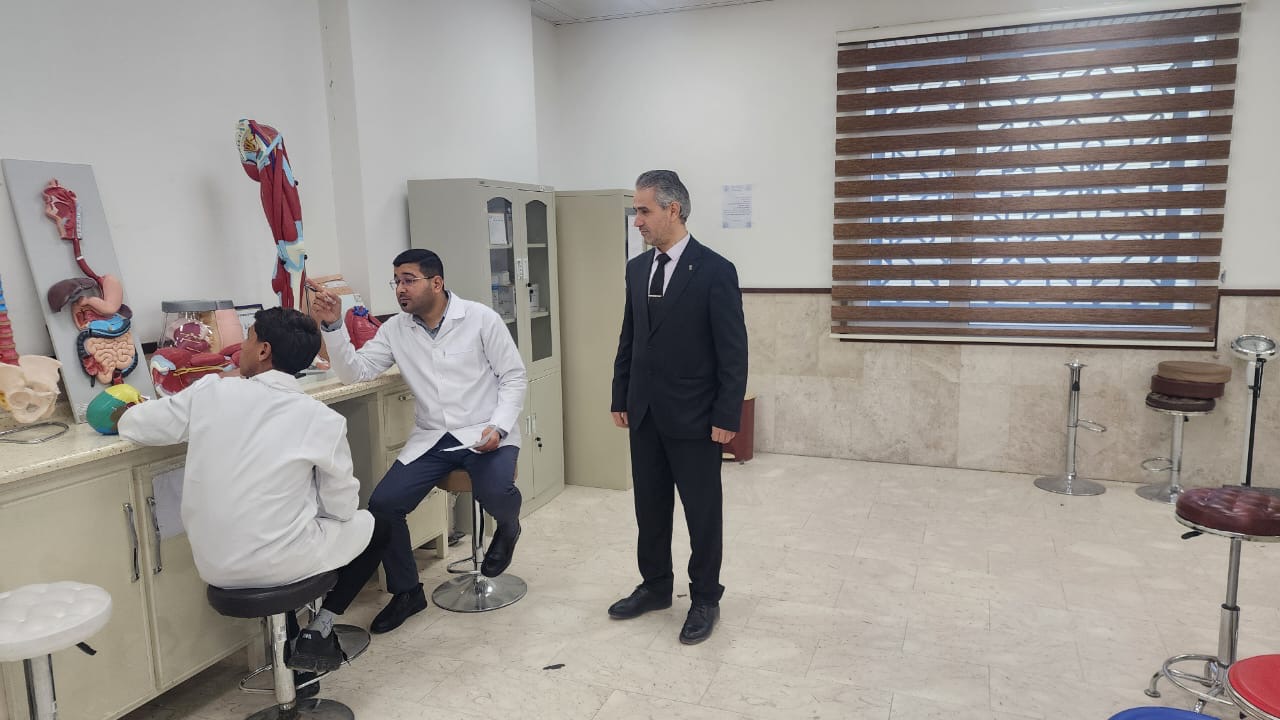 Visit of Dr. Naseem Samir Saqr, Assistant Dean for Scientific Affairs, to the laboratories to supervise and follow up on practical exams for first-stage students for the academic year 2024-2025