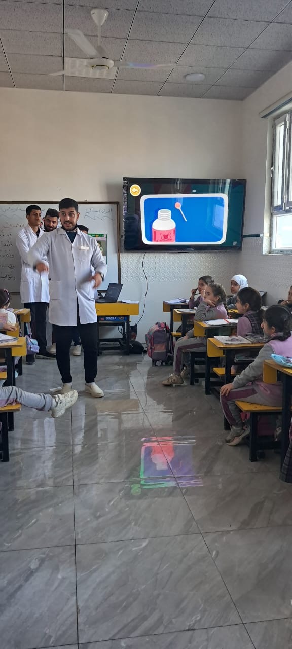 Under the direction of the esteemed Dean of the College of Nursing, Professor Dr. Murtada Ghanem Adai, fourth-year students in the Community Health Nursing Department, under the supervision of faculty members, visited Sama Al-Rayyan Elementary School as part of the practical requirements for the Community Health Nursing course. The students provided health education to the school's students on several topics, most notably proper nutrition and its impact on children's health and academic achievement. They also provided first aid, personal hygiene, the importance of handwashing, and safe play and non-harmful activities. The school environment and services provided to students were also evaluated.