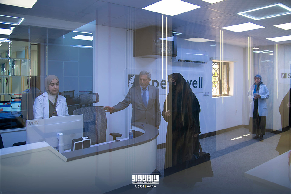 Alongside University President Professor Dr. Ibrahim Al-Hayawi, the Undersecretary of the Minister of Higher Education and Scientific Research for Scientific Research Affairs, Professor Dr. Haider Abd Dahed, conducted a tour of the university's hallways. The Vice Dean expressed his admiration for the university's state-of-the-art facilities and its commitment to providing students with all academic resources.