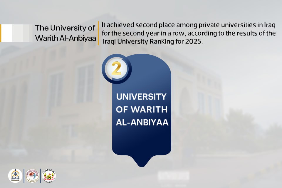 Warith Al-Anbiyaa University (peace be upon him) has secured second place among private universities in Iraq for the second consecutive year, according to the 2025 Iraqi University Ranking issued by the Ministry of Higher Education and Scientific Research.