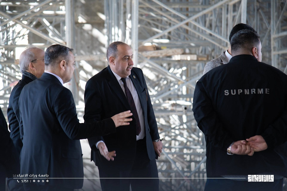 The President of Warith Al-Anbiyaa University, Professor Dr Ibrahim Saeed Al-Hayyawi, accompanied by the Vice President of Academic Affairs, Professor Dr Waqed Al-Moussawi, conducted a field tour across the university campus to monitor the progress of construction projects and review completion rates. This visit comes within the framework of the University Presidency’s commitment to developing infrastructure and improving the university environment.