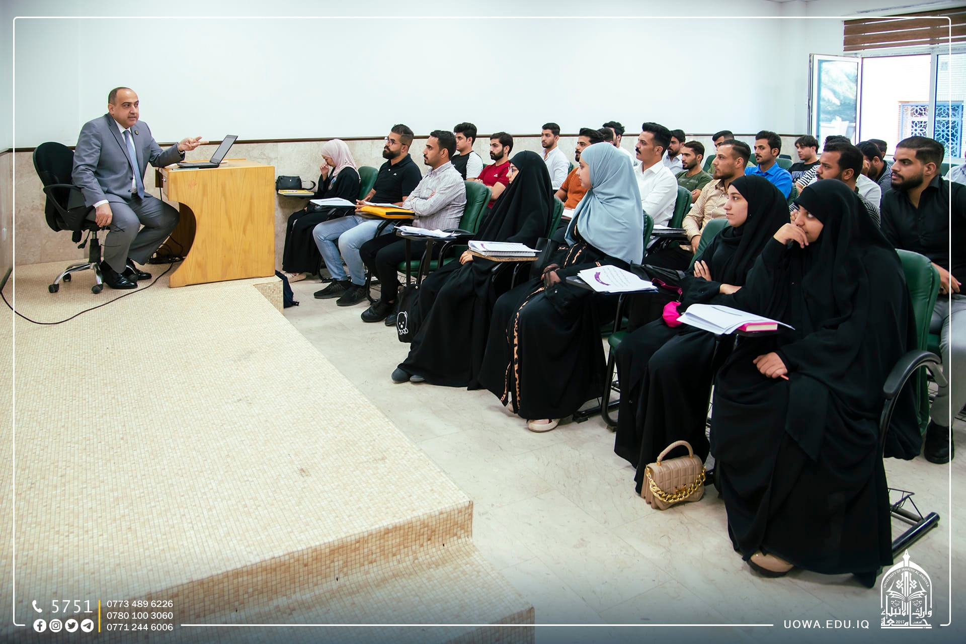 Mr. Hussein Mohammed Ali, a lecturer at the Faculty of Management and Economics, Department of Business Administration at Wraith Al-Anbiyaa University, presented his research titled "The Philosophy of Administrative Insight in the Thought of Imam Ali (peace be upon him) and its Role in Achieving Enlightened Leadership - A Content Analysis Study of the Sermons of Imam Ali (peace be upon him)."