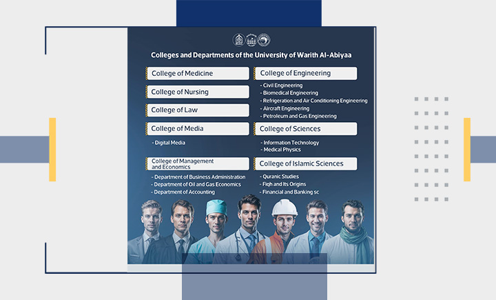 The University of Warith Al-Anbiyaa (PBUH) announces the opening of applications under the “Study in Iraq” programme, inviting students wishing to join the university’s colleges and departments as part of the national initiative launched by the Iraqi Ministry of Higher Education and Scientific Research.